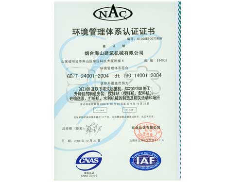 環(huán)境管理體系認(rèn)證證書